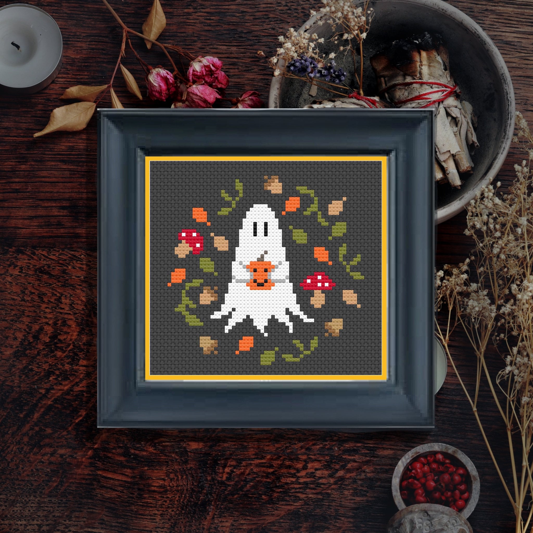 Clarence the ghost Halloween Instant download PDF. Easy counted cross stitch chart. Modern cross stitch pattern. Quarantine Crafts. Original cross stitch pattern. Xstitch, punto croce, embroidery, point de croix, sticken im kreuzstitch.