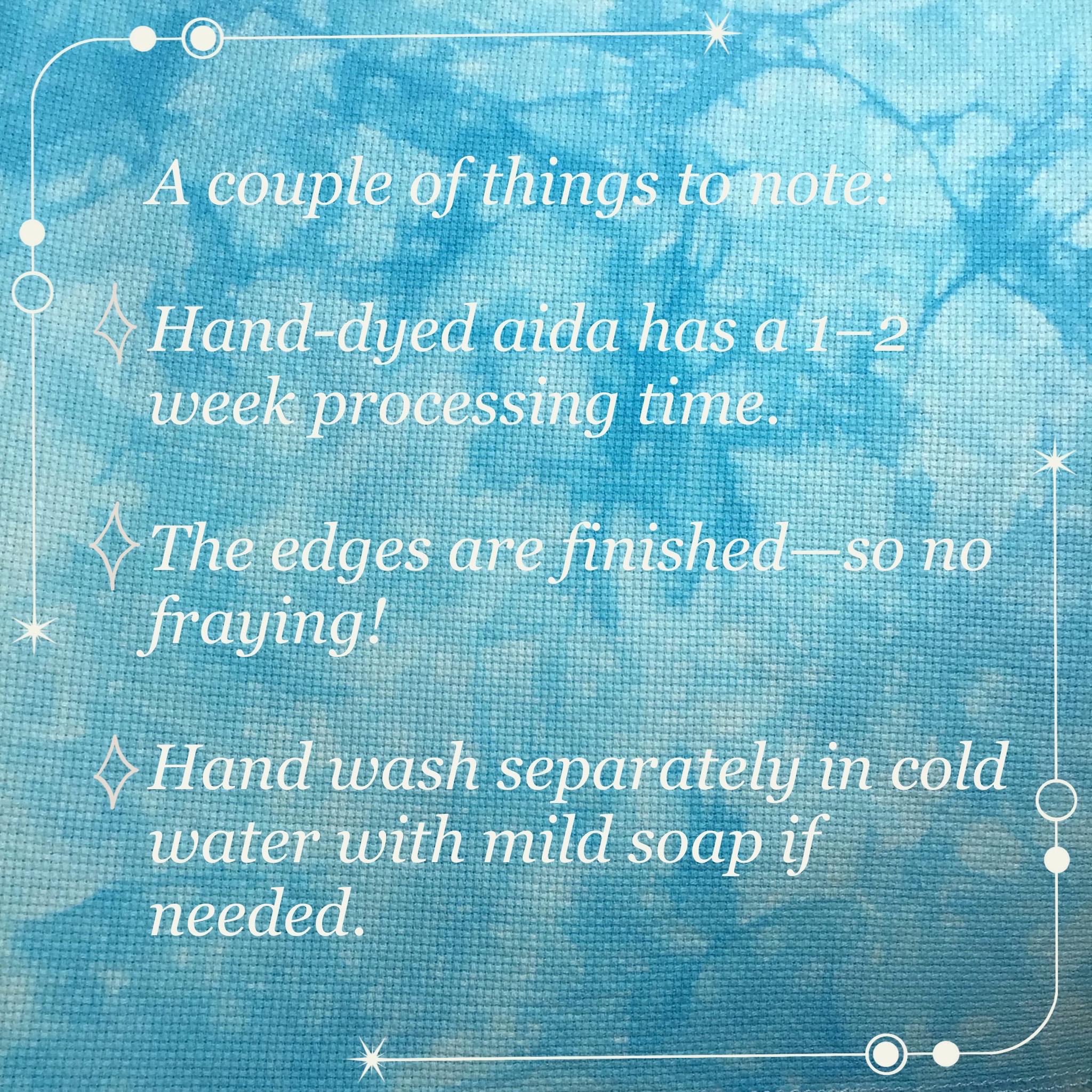 This listing is for MADE TO ORDER dyed Aida, with a 1-2 week processing time. By purchasing, you agree to this processing time. No Cancellations.