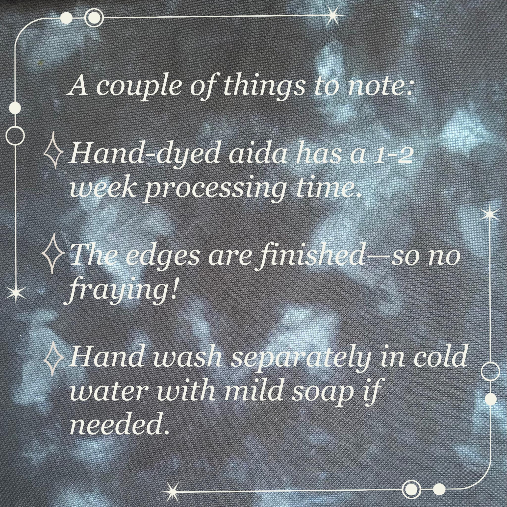 This listing is for MADE TO ORDER dyed Aida, with a 1-2 week processing time. By purchasing, you agree to this processing time. No Cancellations.