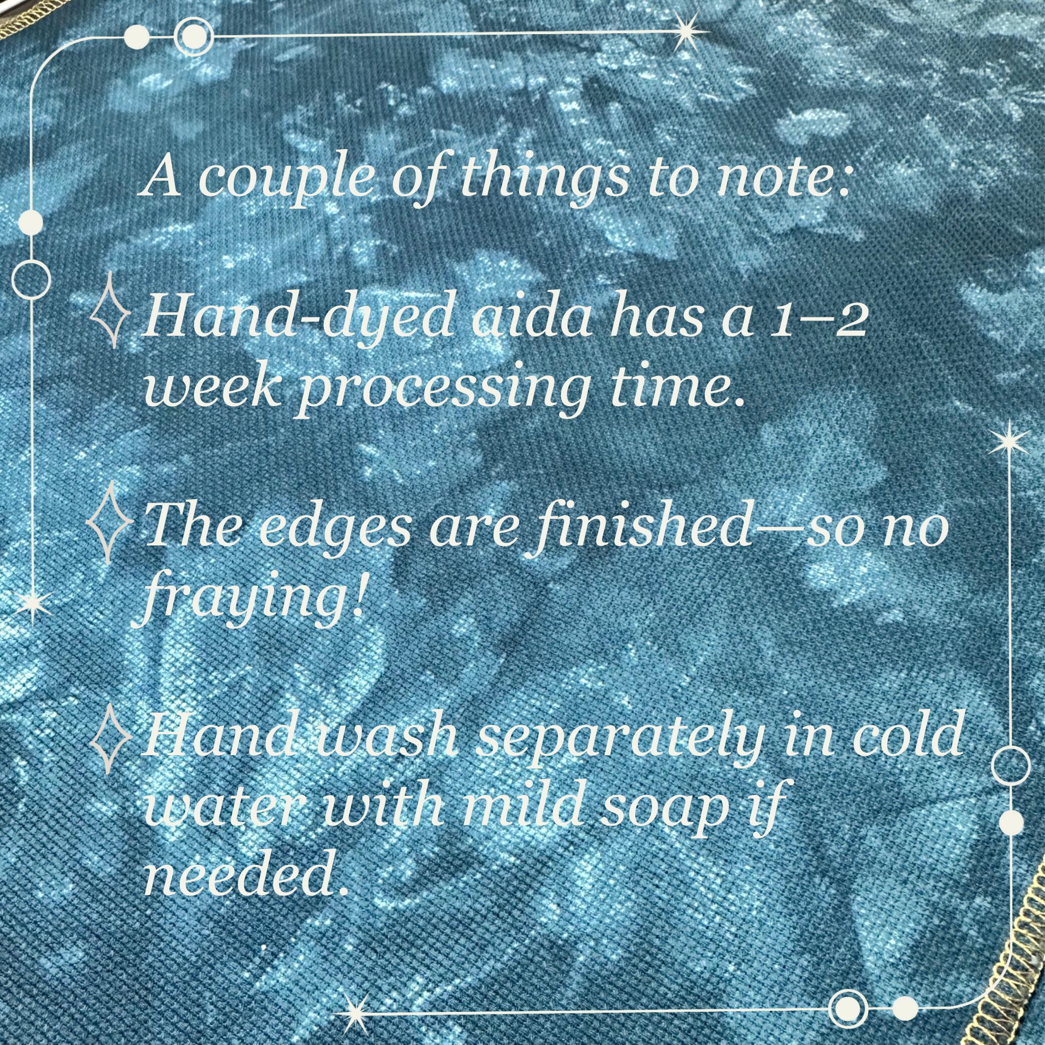This listing is for MADE TO ORDER dyed Aida, with a 1-2 week processing time. By purchasing, you agree to this processing time. No Cancellations.